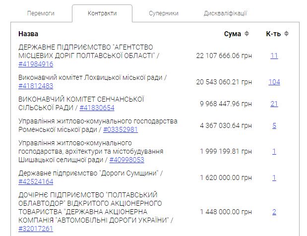 Однак цей штраф мало що змінив у відносинах давніх партнерів. За період участі в публічних закупівлях ДП “Лохвицький Шлях” отримав 215 договорів на загальну суму 67,74 млн грн, левова частка з яких – від виконавчого комітету Лохвицької міської ради.