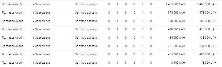 Підприємець має сумнівний досвід участі у не конкурентних закупівлях. Загалом ФОП взяв участь у 150 закупівлях, 134 з яких були не конкурентними. Полтавське управління капітального будівництва посідає почесну першу сходинку серед замовників ФОПу — із 39 угодами на загальну суму в 10 мільйонів гривень.