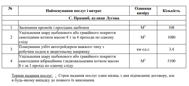 6 липня виконавчий комітет Пришибської сільської ради уклав договір, яким замовив ямковий ремонт автомобільних доріг комунальної власності в селі Пришиб Кременчуцького району. Про це повідомляється на сайті Prozorro.