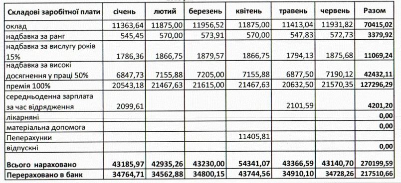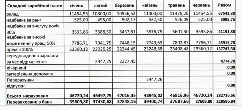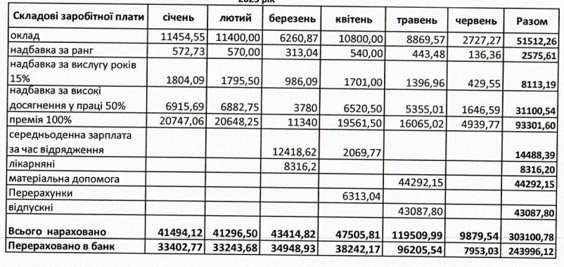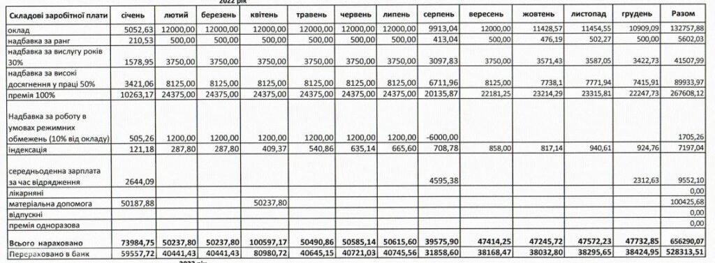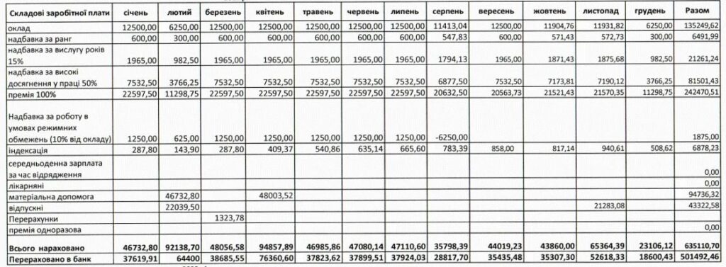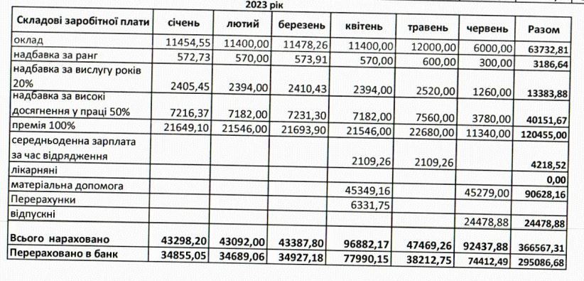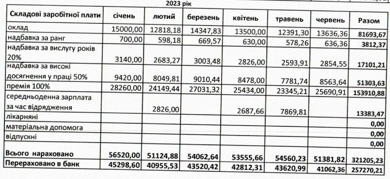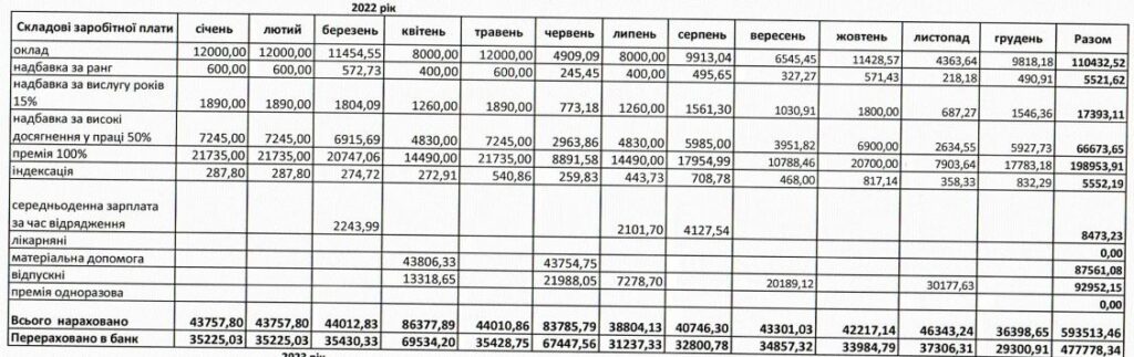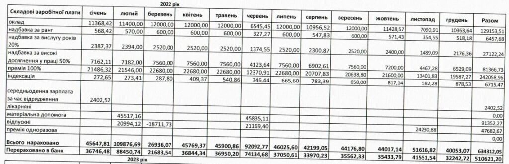 Усього за 2022 рік посадовцю сплатили 501 492 гривні. З січня по червень 2023-го – 217 510 грн.