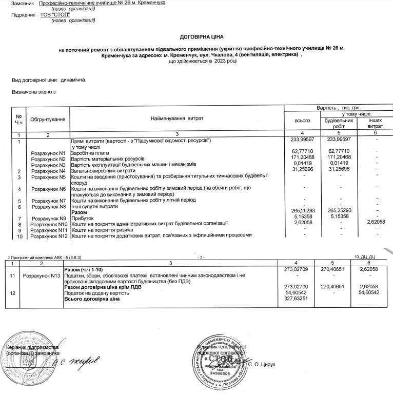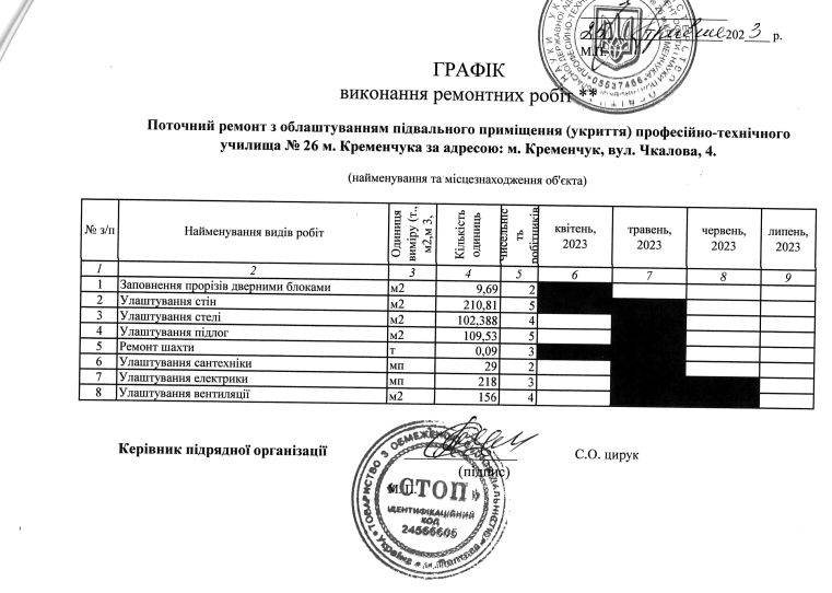 Слід зазначити, що це вже другий контракт, який училище уклало з ТОВ “СТОП”. Перший договір, також на ремонт укриття, був підписаний 25 травня 2023 року і мав значно вищу вартість – 1 млн 516 тис. 988 грн.