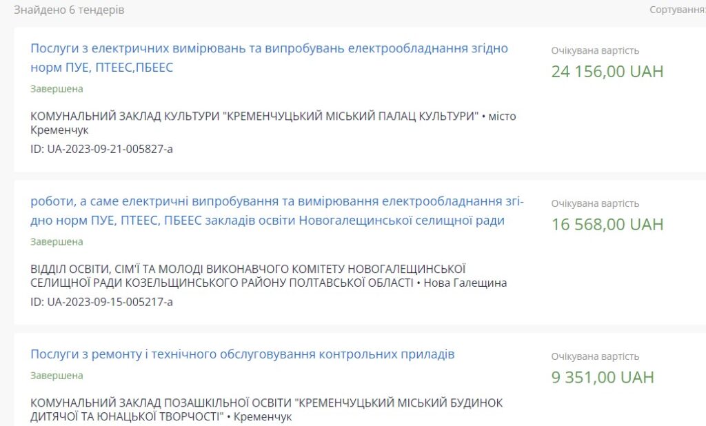 Зазначимо, що стосовно одного з них ми не знайшли тендеру в системі prozorro.