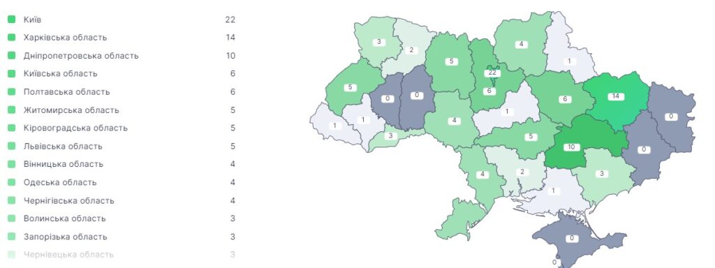 Загалом, за даними системи YC.Market, підприємств-дебютантів, які отримали бюджетні підряди, найбільше у Києві – 22.