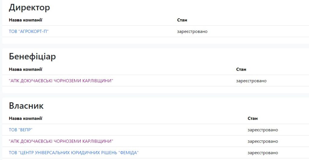 Власником і бенефіціаром ТОВ “АГРОКОРТ-П” є Святослав Русін.