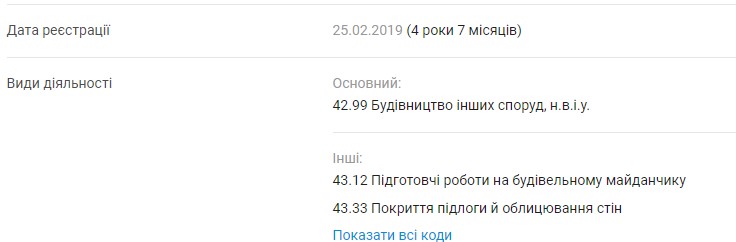 Він має 4,7 років бізнесового стажу, а ще багато спільного з дебютанткою. Зокрема обидва ФОПи перебувають на третій групі оподаткування, мають один і той самий головний КВЕД — 42.99, будівництво інших споруд, — та користуються довірою управління ЖКГ Щербанівської сільської ради.