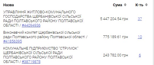 Так, ФОП Медяник має в активі 65 підписаних угод на 7,7 мільйони гривень, з яких 37 угод на левову суму в 5,4 мільйони гривень з управлінням ЖКГ Щербанівської сільської ради.