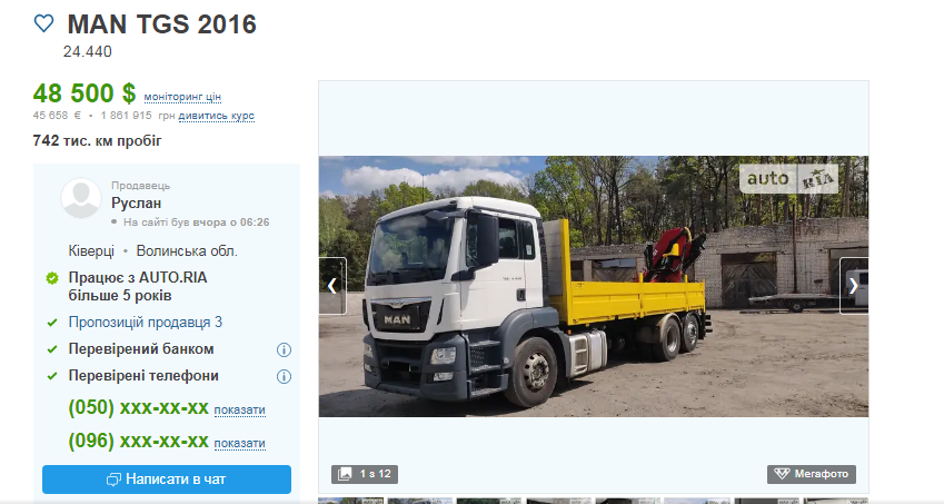 Слід відзначити, що угода не містила інформації про “чисту” ціну на вантажний автомобіль, оскільки вартість включала в себе різні послуги та доставку. Однак у мережі Інтернет можна знайти пропозиції з продажу схожих вантажних автомобілів MAN TGS 24.440, але з пробігом 742 000 км за ціною 1,8 млн гривень.