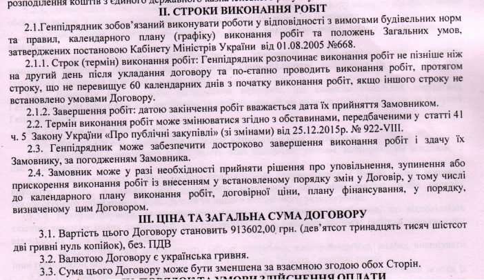 Згідно з угодою, датою завершення ремонтних робіт покрівлі в адміністративній споруді вважається дата їх прийняття замовником (у тендерного оголошенні строком виконання робіт вказано 31 грудня 2023 року). У той же час, підрядник повинен почати ремонт не пізніше другого дня після укладання угоди.