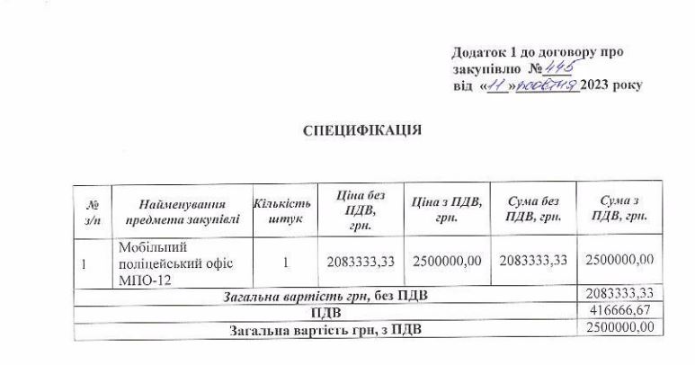 Угоду про придбання кременчуцьким виконкомом мобільного поліцейського офісу МПО-12 підписали ще 11 жовтня, а в системі Prozorro відзвітували 16 жовтня.