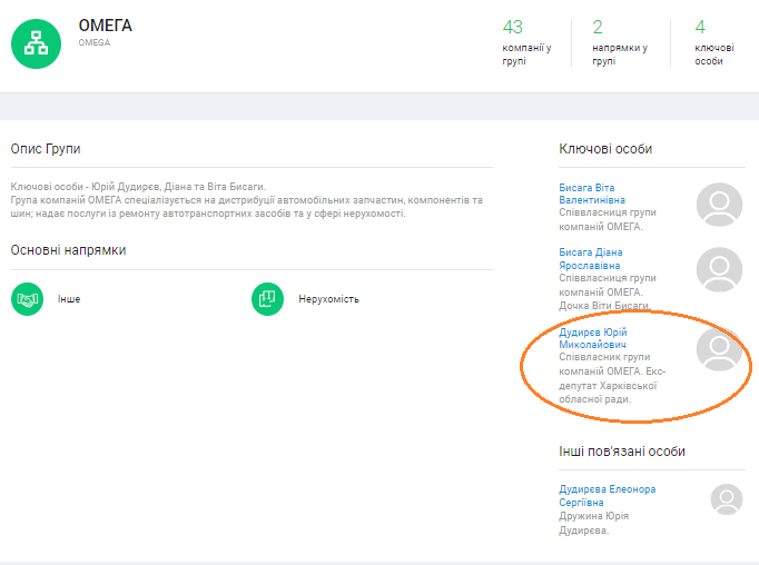 Юрій Дудирєв – колишній депутат Харківської обласної ради від “Партії регіонів”, пов`язаний із безліччю інших фірм, що займаються автотранспортом. Він є кінцевим бенефіціаром фірм “ТОРГОВО-ПРОМИСЛОВА КОМПАНІЯ “ОМЕГА-АВТОПОСТАВКА”, ТОВ “ОМЕГА-ЦЕНТР”, які входять у так звану групу “ОМЕГА”, що спеціалізується на дистрибуції автомобільних запчастин, компонентів та шин; надає послуги із ремонту автотранспортних засобів та у сфері нерухомості, про які згадувавалося у матеріалі видання “КиївВлада” 20 вересня 2023 року.