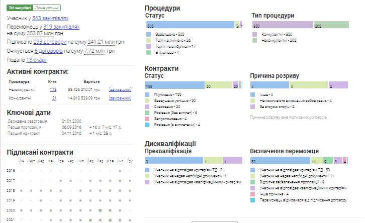 Згідно з даними порталу Clarity Project, «Полтава-Паритет» стала переможцем у 319 закупівлях на суму 353,87 млн грн. З нею підписано 293 договори на суму 241,21 млн грн. Очікується ще 6 договорів на суму 7,72 млн грн. Прикметно, за цей час на підрядника було подано 13 скарг.