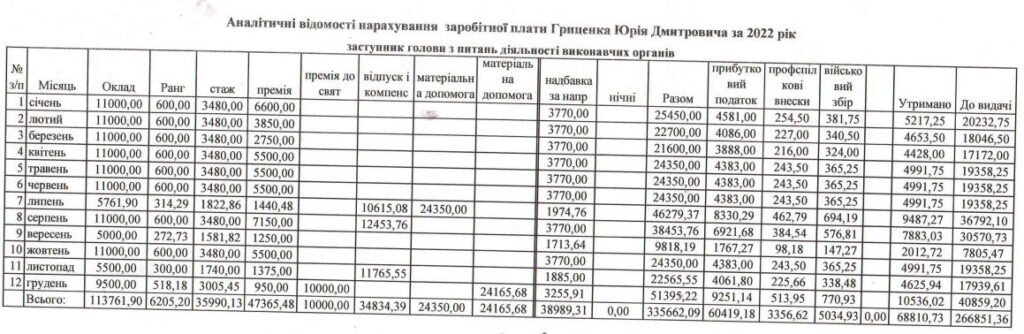 Найбільша зарплатня була у грудні 2022 року – 40 859 грн, за рахунок премії до свята та матеріальної допомоги.