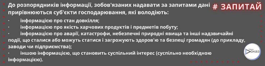 Помилково деякі наші читачі думають, що запити можуть подавати лише журналісти. Насправді запит може написати будь-хто: звичайні громадяни, юридичні особи, об’єднання громадян без статусу юридичної особи.