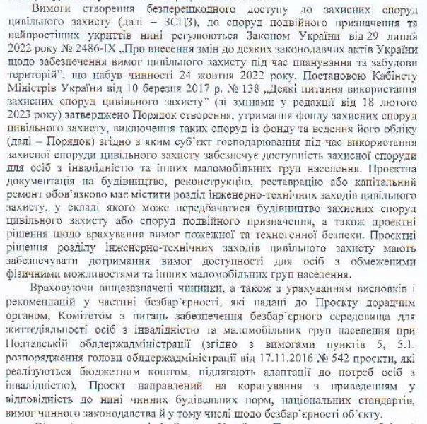 Навіщо коригувати вже готовий проєкт? У відповіді на запит через портал «Доступ до правди», зазначено, що коригування замовили через зміни у законодавчих вимогах стосовно безбар’єрності цивільних укриттів і надіслали перелік документів – зміни до закону та будівельних норм.