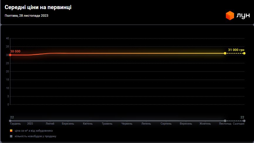 Так само цікаво порівняти ціну за 1 квадратний метр реконструкції із вартістю житла в обласному центрі. Так, згідно з даними ГО “ЛУН Місто”, середня ціна на первинному ринку Полтави (квартири у новобудовах, які не були у власності) у жовтні 2023 року становила 31 тисячу гривень за 1 квадратний метр.