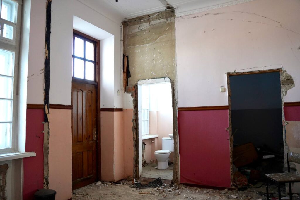 Але саме тут відбувається одна із найбільш вартісних в області реконструкцій у співвідношенні ціна/кількість переселенців – двоповерхову будівлю для ВПО ремонтують за 20,4 мільйони гривень.