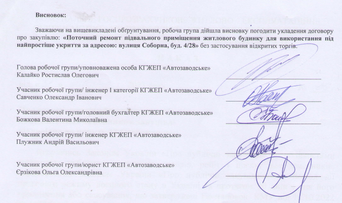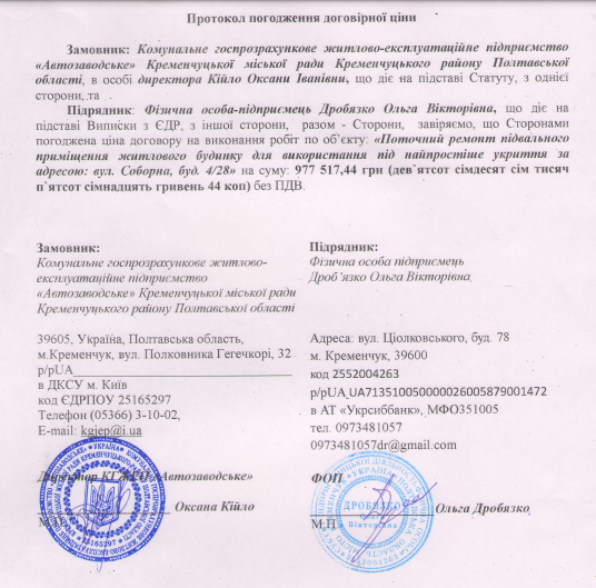 Вартість робіт оцінили в 977 тис. 517,44 грн, а саму закупівлю провели без використання електронної системи, відповідно до прийнятого рішення робочої групи КГЖЕП “Автозаводське”. Тендерна документація з кошторисом, планом робіт, договірною ціною не оприлюднена.