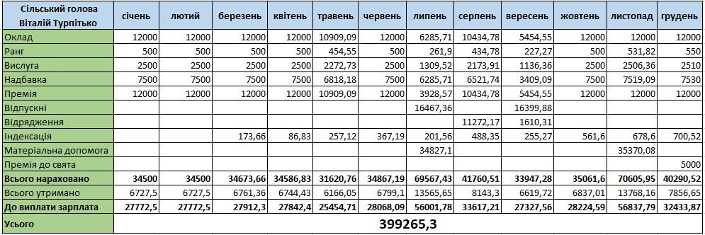 Усього у минулому році Віталію Турпітьку сплатили «на руки» майже 400 тисяч зарплатні.