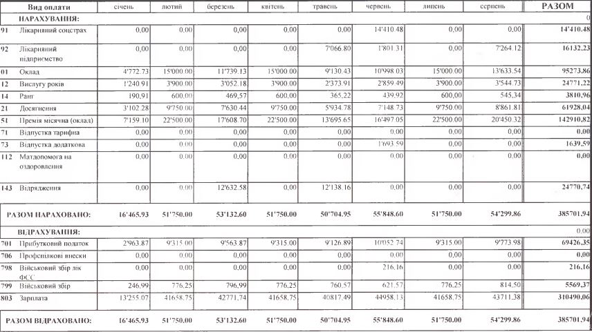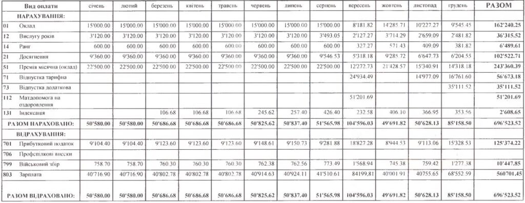Найбільше коштів посадовцю нарахували у липні минулого року – понад 40 тис. грн, сюди входить і премія, і відпускні, і оздоровчі, і надбавки.