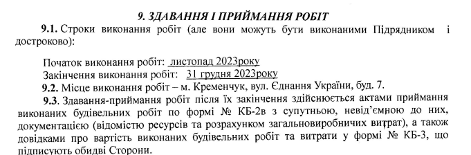 Самі ж роботи виконуватиме місцеве КГП “Союзрембуд”. Як йдеться в угоді, роботи мали вже розпочатися в листопаді, а завершитися до 31 грудня 2023 року.  Гарантійний термін виконаних робіт становить один рік. Деталі, що конкретно робитимуть у гуртожитку, в договорі не розкривають.