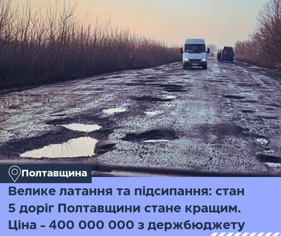 Велике латання та підсипання: стан 5 доріг Полтавщини стане кращим. За 400 мільйонів з держбюджету