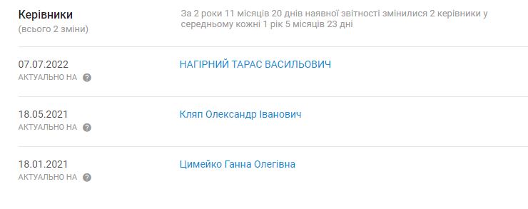 Власниками та бенефіціарами є Олександр Тимошенко і Тарас Нагірний. Останній також є директором компанії. За останні три роки це вже третій директор фірми.