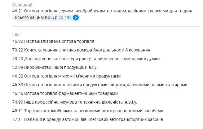 Цікаво, що надаючи лікарні обладнання в оренду фірма має головну спеціалізацію – оптова торгівля зерном, необробленим тютюном, насінням і кормами для тварин. Спектр її інших видів діяльності широкий – від оптової торгівлі м’ясом до дослідження кон’юнктури ринку.