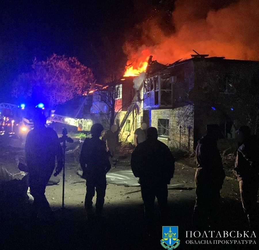 Внаслідок влучання зайнявся двоповерховий сімейний гуртожиток, де проживало близько 30 людей. За даними міністра МВС Ігоря Клименка, цієї ночі на Полтавщині працювали майже 100 рятувальників.