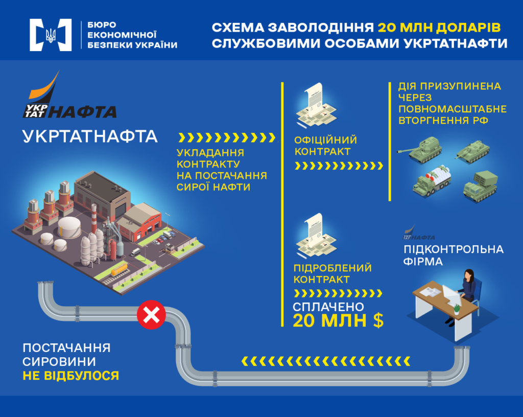 Службові особи підприємства уклали контракт на постачання сирої нафти та готували рахунки на проведення оплати. Розуміючи, що в цей період імпорт сировини неможливий, вони підробили документи, щоб імітувати закупівлю.