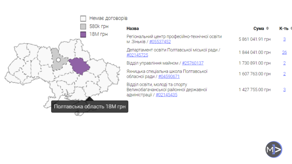 Відділ освіти і молоді Котелевської сільради посідає почесну другу сходинку з 3 контрактами на 24,2 млн.