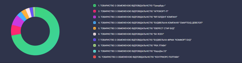 ТОВ “Грандбуд+” є безумовним лідером серед підприємств-будівельників віком до 2 років, що працюють з бюджетними грошима.