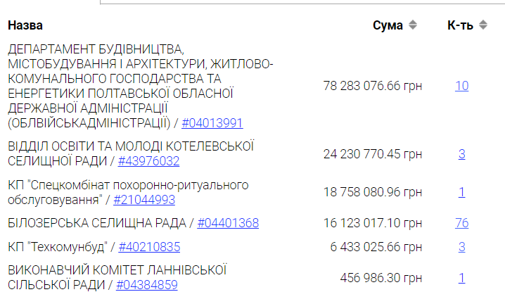 Особливою довірою ТОВ “Грандбуд+” користується в департаменту будівництва Полтавської ОВА, який довірив йому 10 контрактів на 78,2 млн грн.
