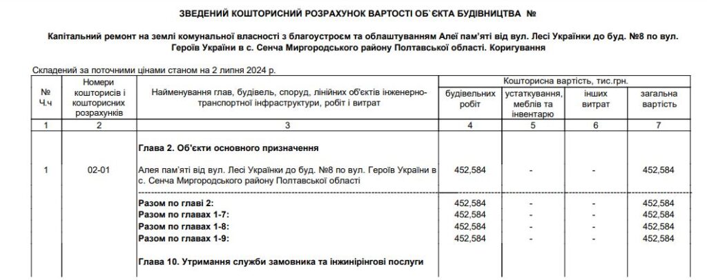 Договір на облаштування Алеї пам’яті у селі підписали з ФОП Захарченко Іван Якович. Згідно з аналітичним порталом youcontrol, підприємець зареєстрував свою діяльність 31 липня 2024 року на Миргородщині.