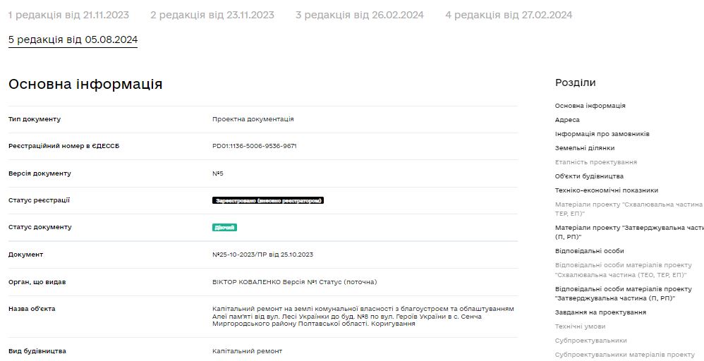 Проєктно-кошторисну документацію по даному капремонту коригували 5 разів.