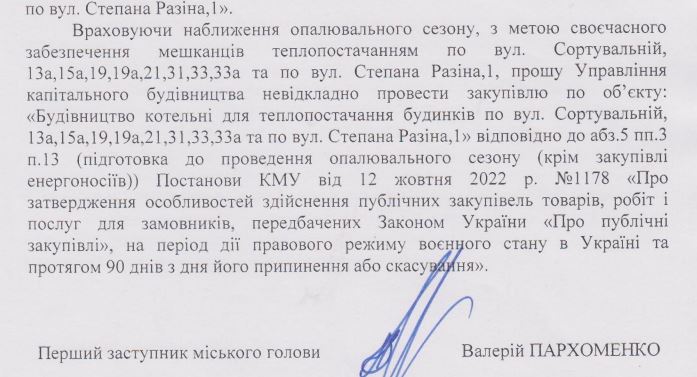 Цю закупівлю зробили без проведення відкритого тендера, мотивувавши наближенням опалювального сезону.