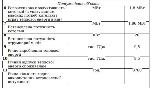 Згідно з експертним звітом від 3 серпня 2023 року, котельня має потужність 1,8 МВт. Враховуючи цей обсяг, проєктом передбачено встановлення в котельні 3-х котлів Buderus Logano GB402 по 0,62 мВт, кожен з газовими пальниками.