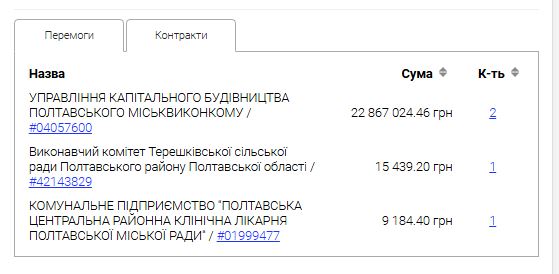 Щодо ТОВ “ПОЛТАВАРАЙАГРОБУД”, то з ним підписано 4 договори на суму 22,89 млн грн, найбільші – із управлінням капбудівництва.