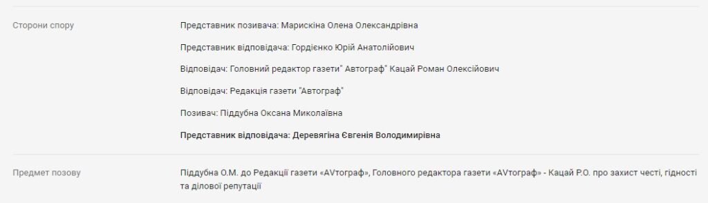АО «Консалтинг груп» неодноразово захищало в суді інтереси газети «Автограф», зокрема у справі проти Фелікса Уріна, конкурента Юрія Шаповалова на виборах, та у справі про захист честі, гідності й ділової репутації Оксани Піддубної, на той час депутатки міськради, відомої критикою кременчуцької влади. У цих процесах засновники фірми виступали представниками відповідача – редакції газети.
