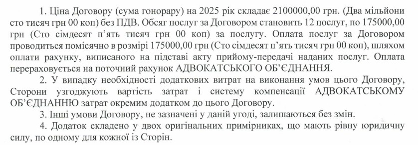 Послуги надаватимуть упродовж 2025 року. Оплату послуг здійснюватимуть щомісячно у розмірі 175 тис. грн.