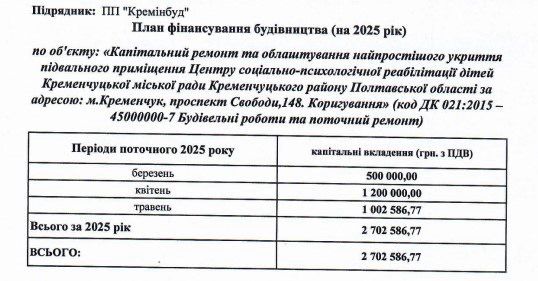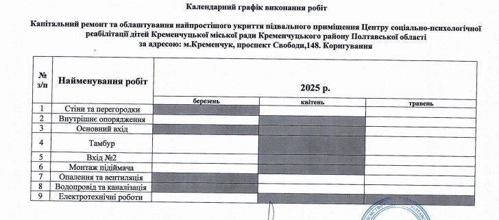 Центр соціально-психологічної реабілітації дітей Кременчуцької міської ради замовив додаткові роботи до капітального ремонту та облаштування укриття підвального приміщення. Про це повідомляє сайт Prozorro.