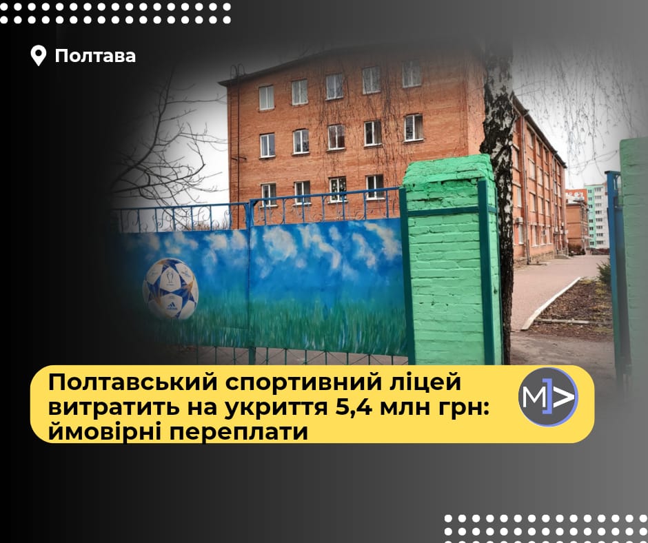 Полтавський спортивний ліцей витратить на укриття 5,4 млн грн: ймовірні переплати