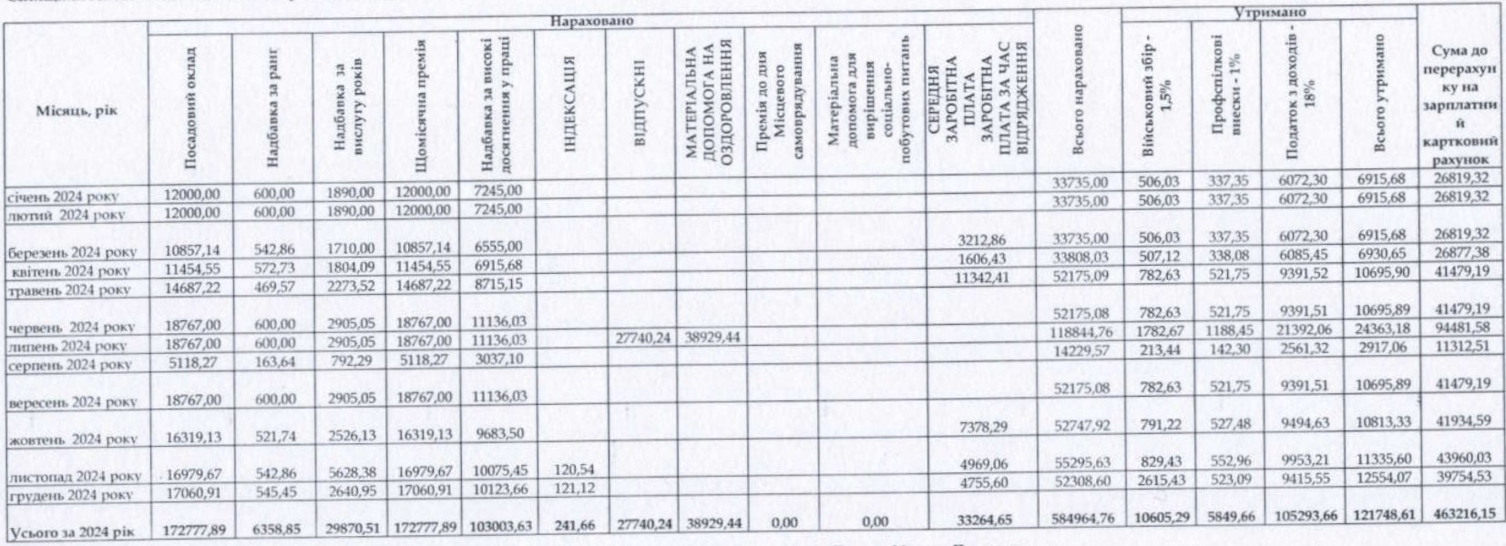 Загальна сума, яку нарахували селищному голові у 2024 році, становить 584 964 грн, з них отримано на руки трохи більше 463 тисяч.