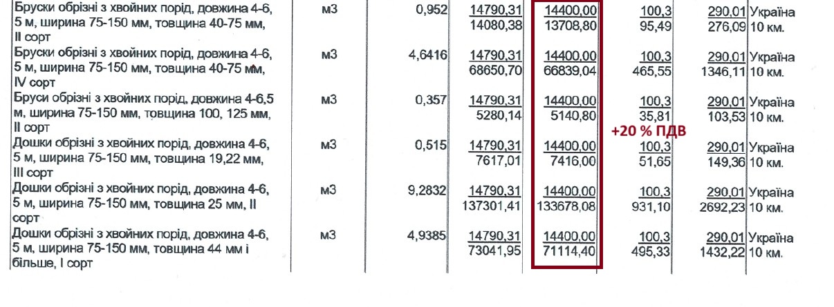 Таким чином, ймовірна переплата лише на дошках і брусах може складати щонайменше 180 тис. грн.