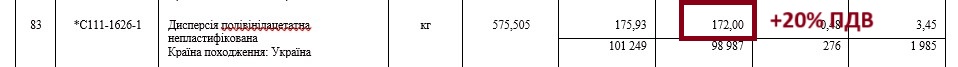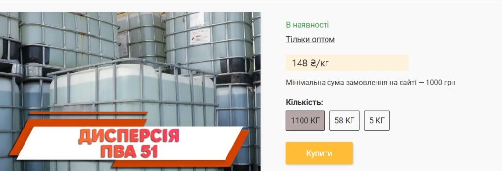 Так, «Трест Житлобуд-1» врахував у кошторисі дисперсію полівінілацетатну непластифіковану по 206,4 грн/кг, тоді як «Лекс ритейл» продає таку від 145 до 175 грн/кг (в залежності від обсягу), «Екохім» пропонує таку за 138 грн/кг (оптова ціна від 400 кг – 134,4 грн/кг)