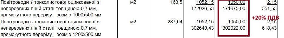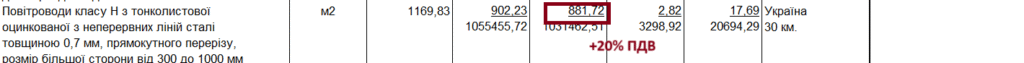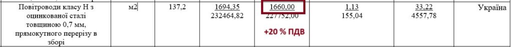 Так само за нижчою ціною замовляли такі повітроводи на Prozorro у вересні. Приміром, управління освіти Голосіївської районної в місті Києві державної адміністрації заклало у кошторис за ціною 1 058,1 грн/кв.м.