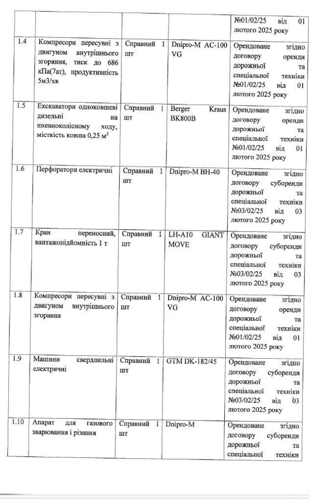 З поданої довідки про матеріально-технічну базу видно, що переважна частина техніки, яку ТОВ «БК «Лідер Строй» використовує для виконання робіт, перебуває не у власності компанії, а в оренді. Зокрема, значний обсяг обладнання орендовано у ПП «Техноагросервіс». Власник цього підприємства Григорій Хачатурян також є бенефіціарним власником ТОВ «Будівельник 2016». Ця компанія регулярно бере участь та перемагає у бюджетних закупівлях у Полтаві, зокрема у сферах дорожніх та ремонтних робіт.