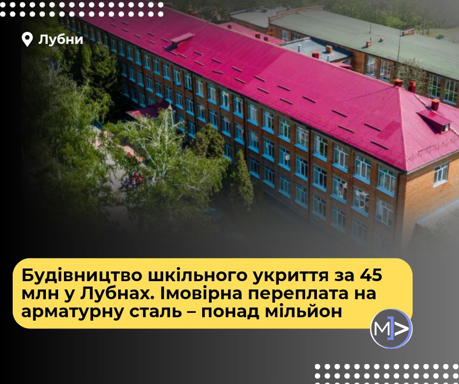 Будівництво шкільного укриття за 45 млн у Лубнах. Імовірна переплата на арматурну сталь – понад мільйон