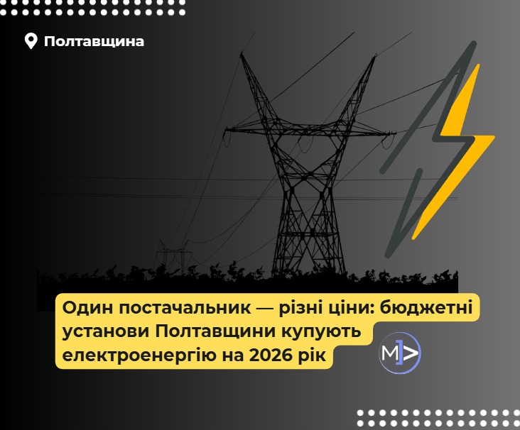 Один постачальник – різні ціни: бюджетні установи Полтавщини купують електроенергію на 2026 рік