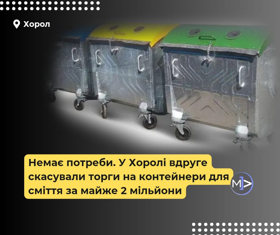 Немає потреби. У Хоролі вдруге скасували торги на контейнери для сміття за майже 2 мільйони