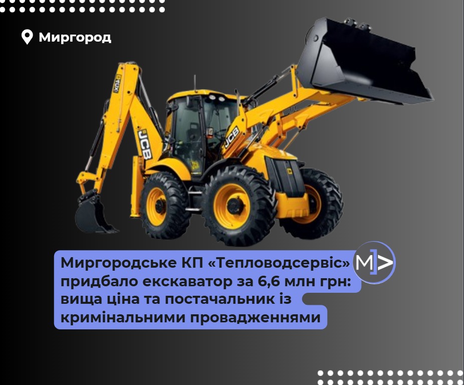 Миргородське підприємство «Тепловодсервіс» придбало екскаватор за 6,6 млн грн: вища ціна та постачальник із кримінальними провадженнями